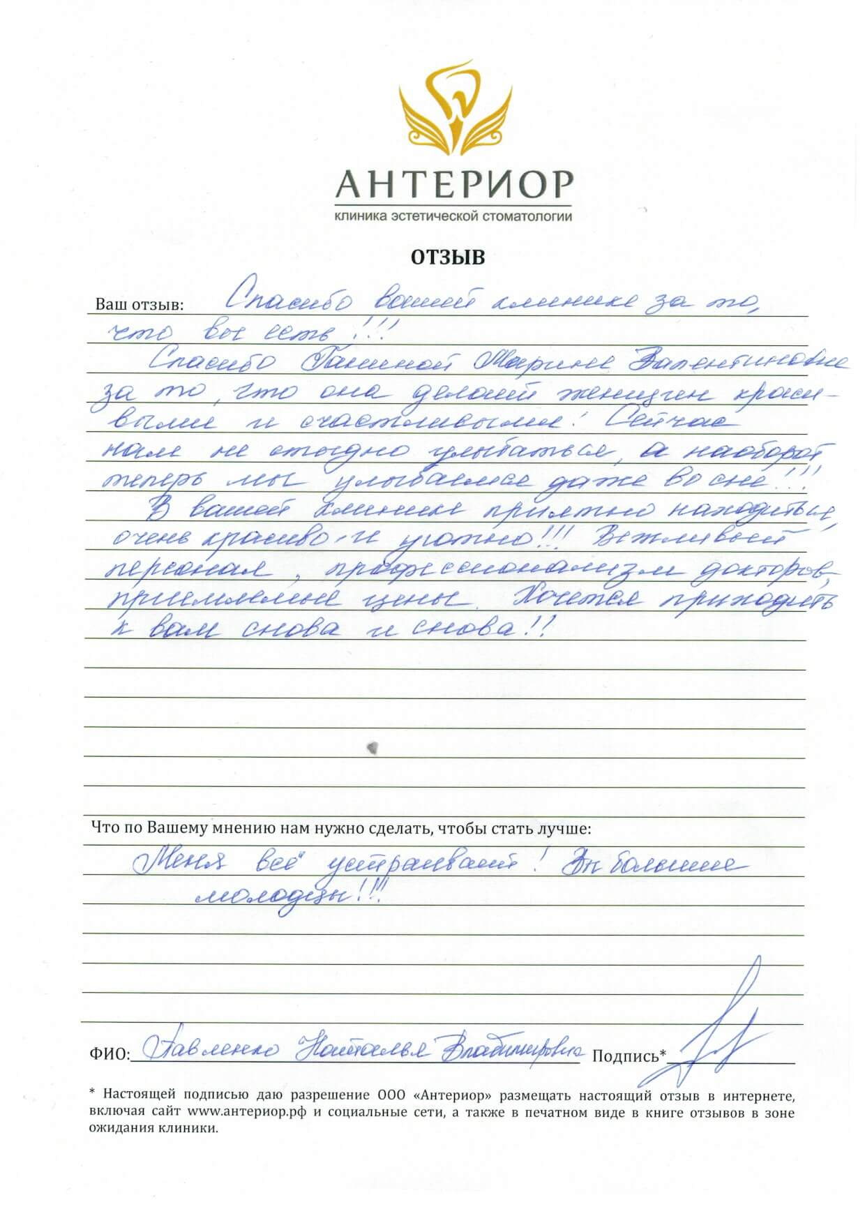 Спасибо Ганиной Марине Валентиновне за то, что она делает женщин красивыми и счастливыми. Сейчас нам не стыдно улыбаться, а наоборот теперь мы улыбаемся даже во сне!!!