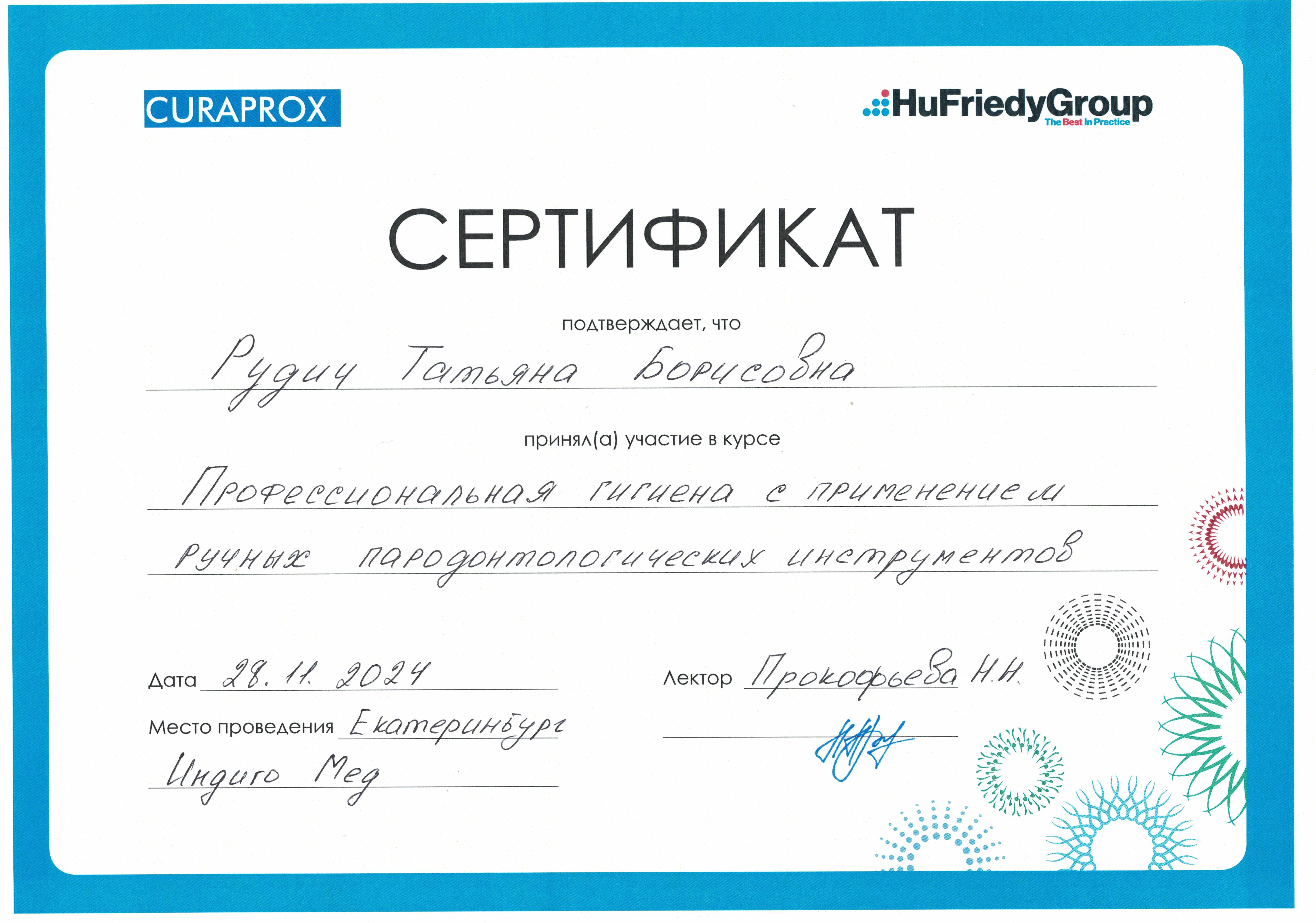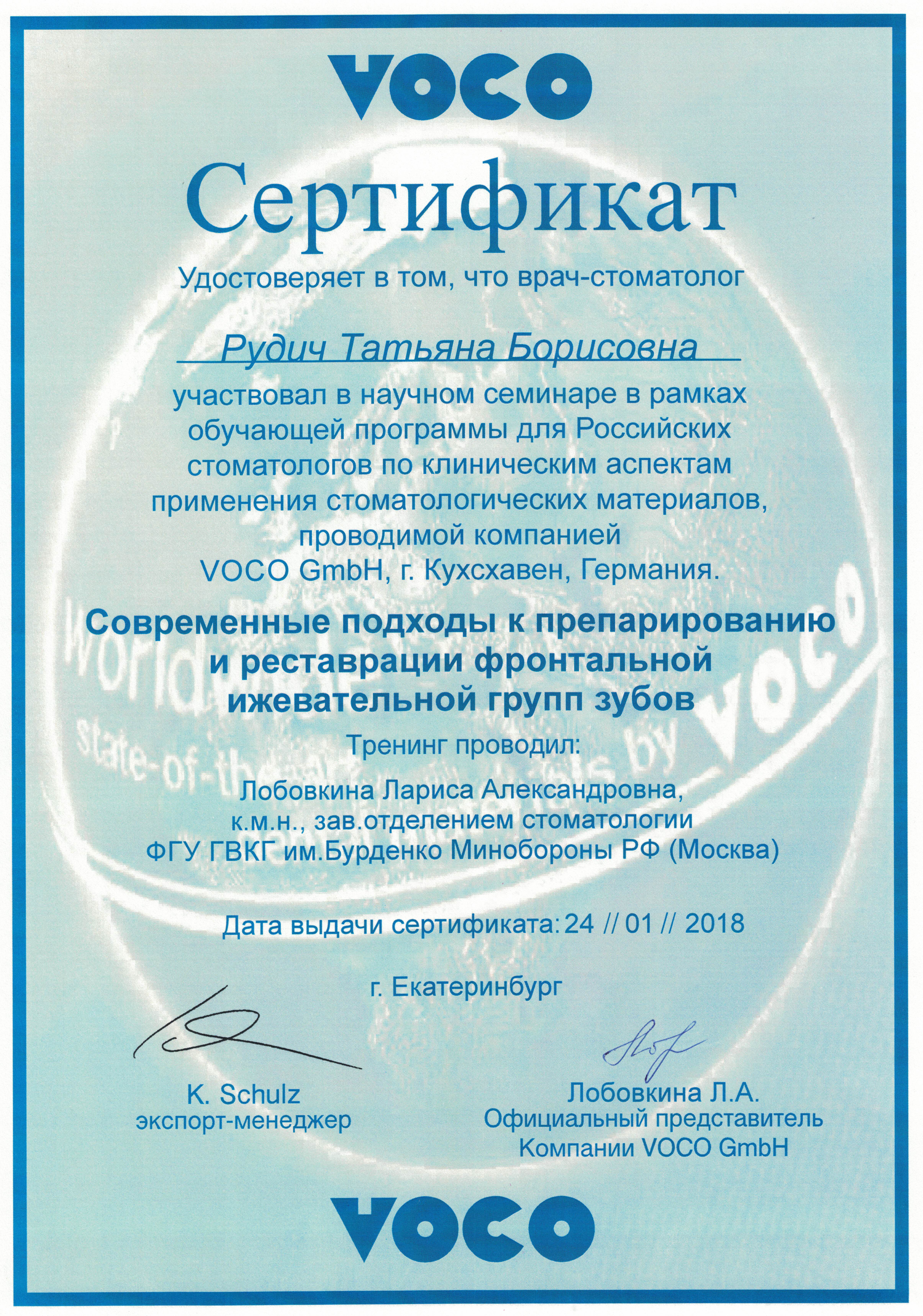Имеет сертификаты по специальности: